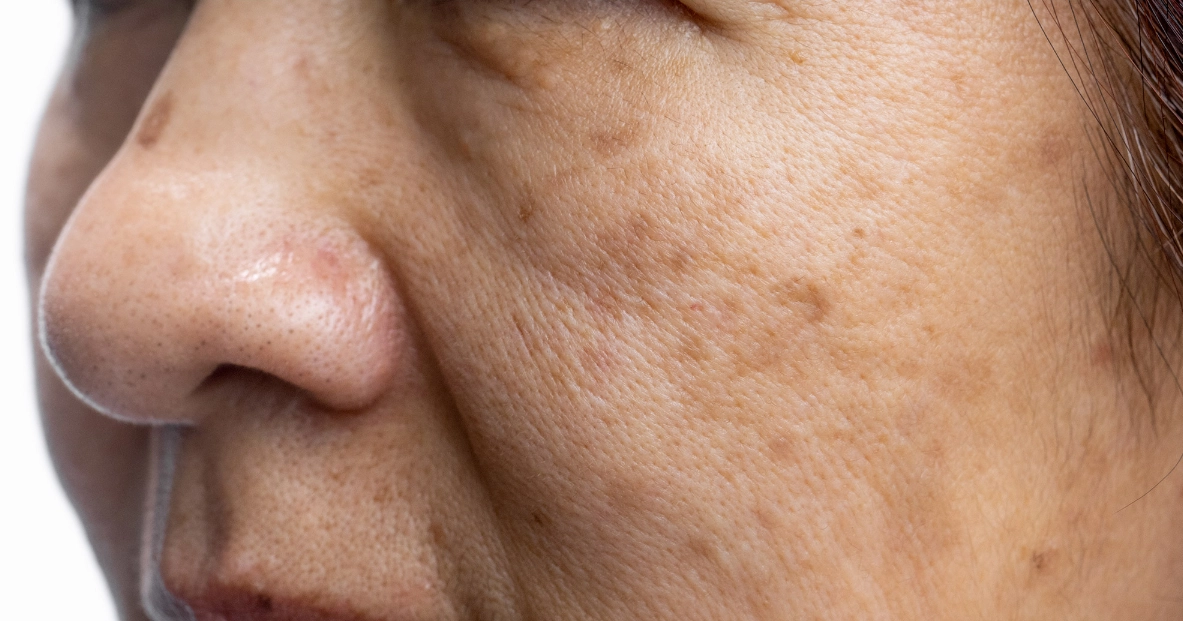 In contrast, solar lentigo—often caused by chronic sun exposure—presents as flat brown spots, typically found on areas frequently exposed to sunlight such as the face and hands.