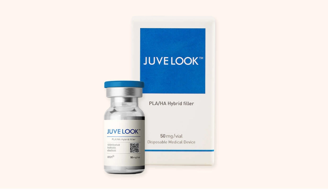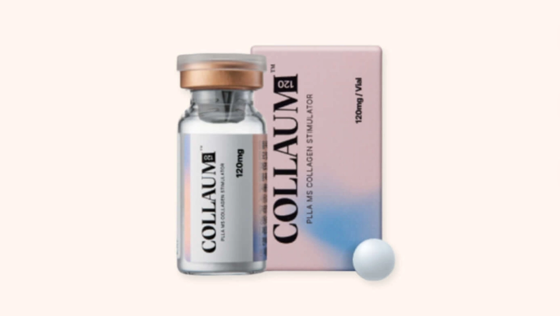 A skin booster containing PLLA, supporting collagen synthesis for improved elasticity and volume.